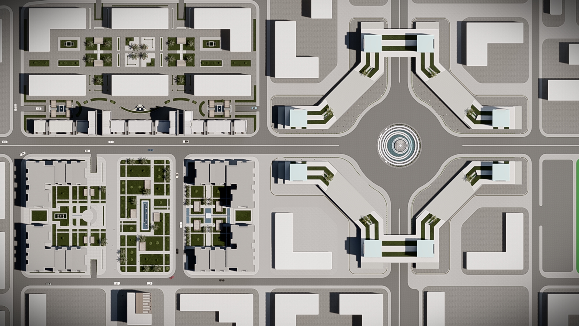 - محاور وصول مدروسة تربط السكن بالفعاليات التجارية والخدمية بسهولة.